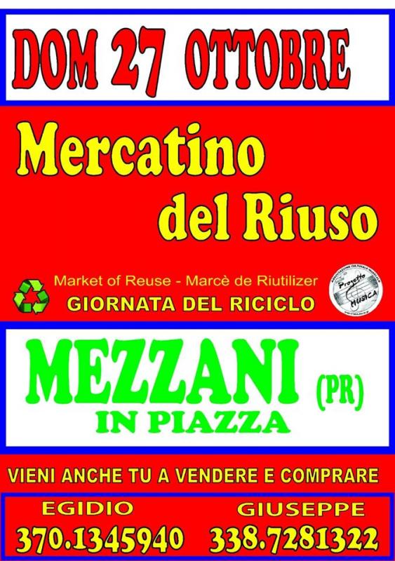 Domenica 27 Ottobre 2019 arriva a Mezzani (PR), il Mercatino del Riuso. Una giornata dedicata al riciclo di oggetti da passare in allegria tra le tante bancarelle.