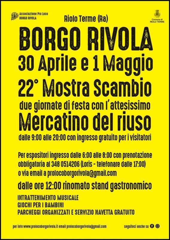 Torna Domenica 30 Aprile e Lunedì 01 Maggio 2023 l'appuntamento tradizionale che accoglie per le strade di Borgo Rivola tanti espositori e visitatori in cerca di curiosità e di oggetti da vero intenditore.