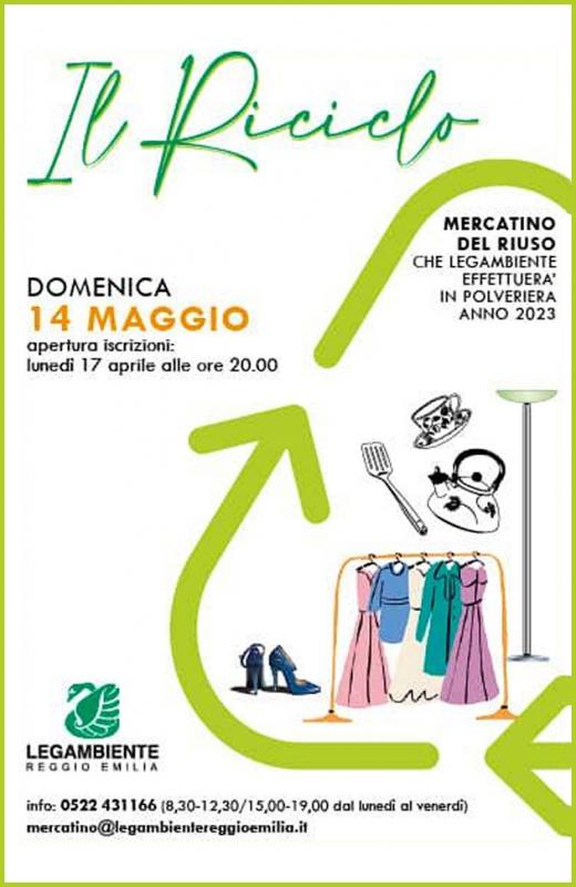 Legambiente Reggio Emilia effettuerà in Polveriera un mercatino del riuso chiamato "IL Riciclo". L'intento è quello di favorire una seconda vita agli oggetti e alle cose delle nostre case.