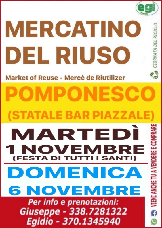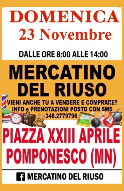 Domenica 23 Novembre 2025 torna il Mercatino Del Riuso a Pomponesco, per una giornata dedicata al riciclo.