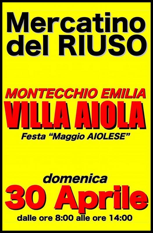 Domenica 30 Aprile il Mercatino del Riuso è a Villa Aiola a Montecchio Emilia (RE) in concomitanza con la Festa "Maggio Aiolese" dalle ore 08:00 alle ore 14:00.