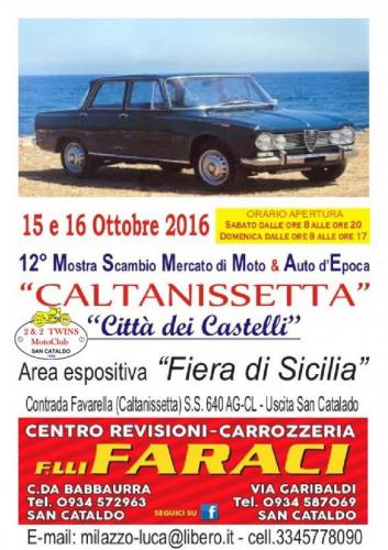 La Fiera di Sicilia ha il piacere di annuncirvi la 12° Mostra scambio Auto e Moto D’epoca,che si terra’ il 15/16 ottobre 2016 presso il centro fieristico Fiera di Sicilia a Caltanissetta.