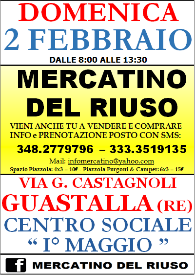Ritorna il consueto appuntamento con il MERCATINO DEL RIUSO A GUASTALLA!!