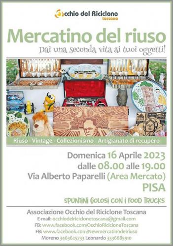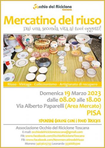 A Pisa, in Via Alberto Paparelli (Area Mercato) si svolge ogni terza Domenica del mese il Mercatino del Riuso, Vintage, Collezionismo, Artigianato di Recupero.