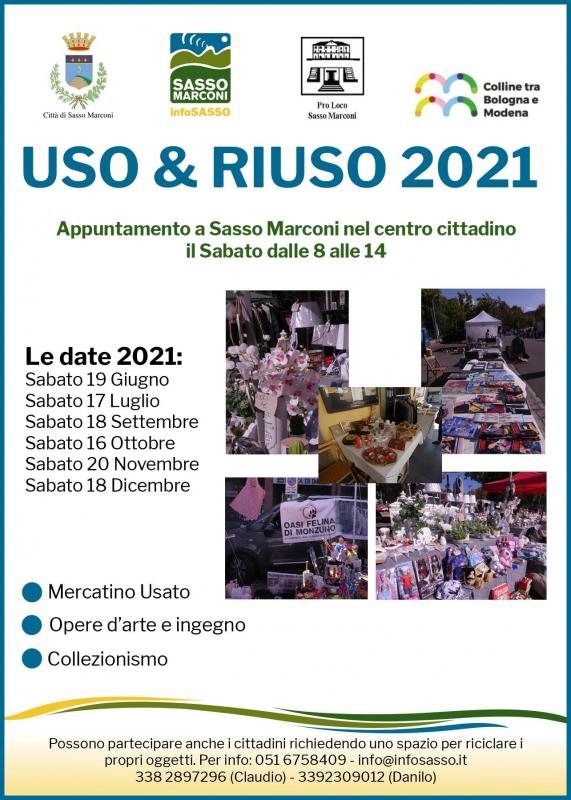 Ogni terzo Sabato del mese torna l'appuntamento con “Uso & Riuso” il mercatino dell’usato a Sasso Marconi organizzato dalla Proloco di Sasso Marconi.