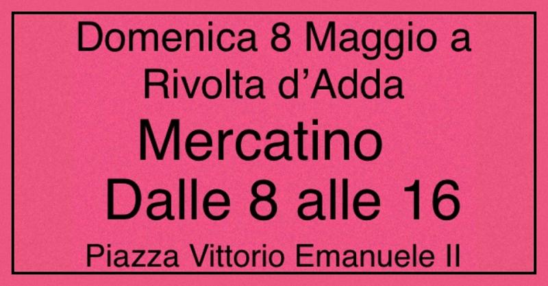 In Piazza Vittorio Emanuele II a Rivolta d'Adda in provincia di Cremona si svolge nella giornata di Domenica 08 Maggio 2022, dalle Ore 08.00 alle Ore 16.00, il Mercatino dei Libri Usati, Bigiotteria e Piccola Oggettistica.