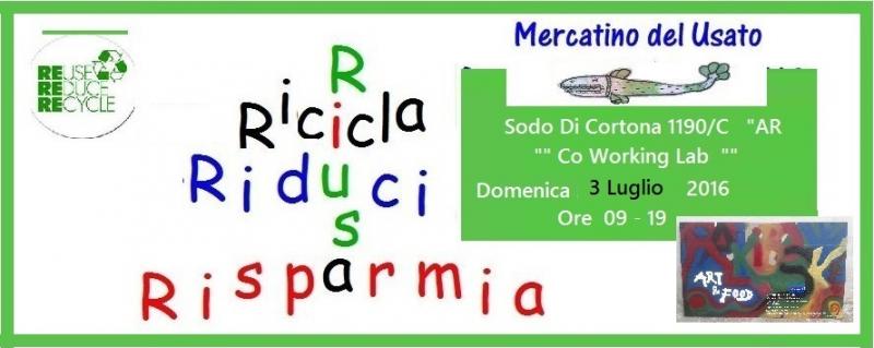 Ogni Prima Domenica del Mese per il periodo Primavera Estate: Mercatino del Usato "Riduci Riusa Ricicla Risparmia nello Spazio" Co Working, in Localita Sodo di Cortona (AR).