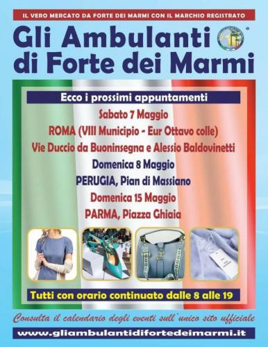 Per conoscere nel dettaglio il calendario completo delle date dei mercati dello show itinerante de "Gli Ambulanti di Forte di Marmi" è possibile consultare l’unico sito web ufficiale (attenzione ai "fake") www.gliambulantidifortedeimarmi.it, dal quale si accede anche alla pagina Facebook da oltre 80mila fans certificati ed alla App del Consorzio.