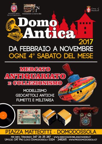 A Domodossola, ogni quarto sabato del mese da febbraio a novembre, si tiene il mercatino dell'antiquariato e del collezionismo Domo Antica, in cui troverete giocattoli, modellismo, fumetti e tanto altro.