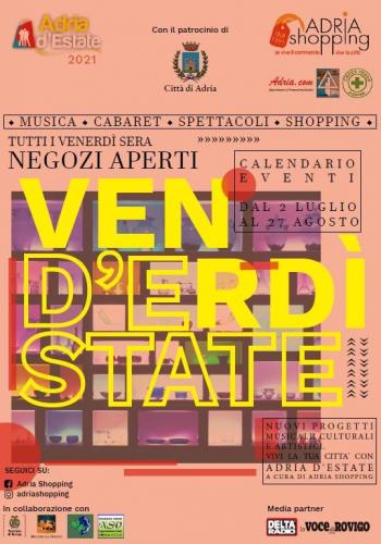 L'Associazione Commercianti AdriaShopping in collaborazione con l'Associazione Culturale NSV Organizzazione Eventi affiliata A.I.C.S. - Comitato Provinciale di Rovigo (RO), organizzano per tutti i Venerdì sera di Luglio ed Agosto 2021 ad Adria (RO) in Corso Mazzini, dalle ore 20:00 alle ore 24:00 i Mercatini di “Adria d'Estate 2021” che prevedono la presenza di Espositori dell'Artigianato Artistico e delle Opere d'Ingegno Creativo con curiose ed originali Idee Regalo d'Estate per la Casa, il Giardino e il Tempo Libero, bancarelle di Prodotti Enogastronomici Tipici Regionali con Degustazioni, Specialità Alimentari Dolci e Salate Stagionali, Prodotti e Rimedi Naturali per il Benessere e la Cura del Corpo e Operatori dello Street Food con Punti Ristoro.