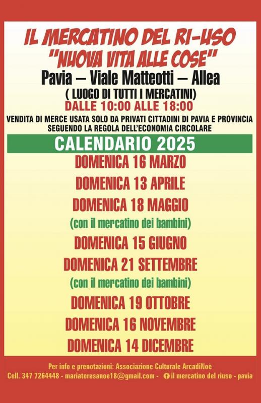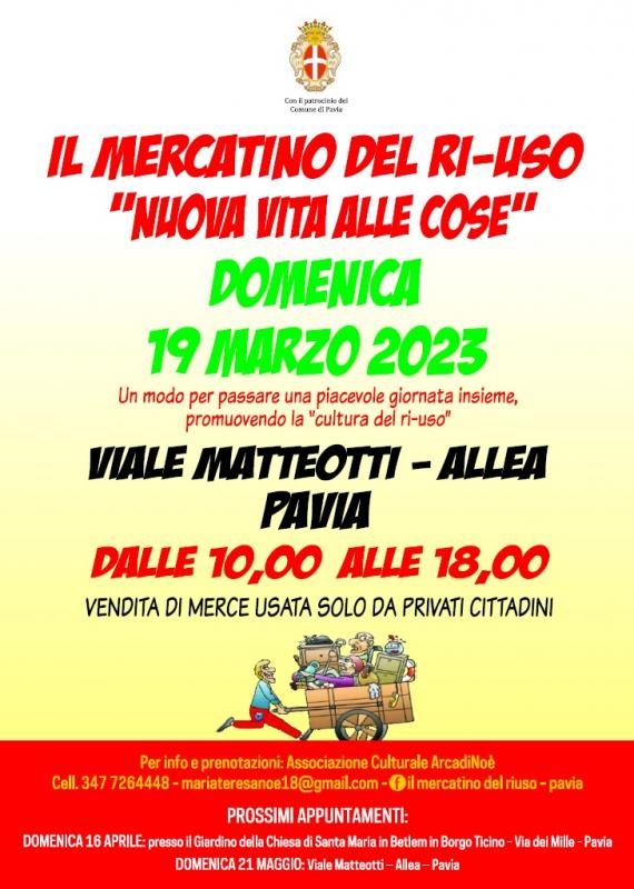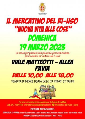 Manca pochissimo al prossimo “Mercatino del ri-uso”, che per l’edizione di Maggio torna ancora sull’Allea di Viale Matteotti a Pavia.