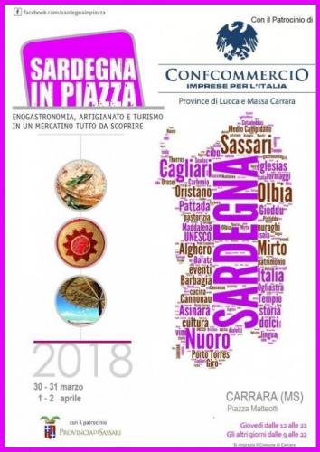 Carrara (MS) – 30 – 31 Marzo e 1 - 2 Aprile presso Piazza Matteotti, si svolgerà la manifestazione Sardegna in Piazza Col Patrocinio di Confcommercio - Imprese per l'Italia - Province di Lucca e Massa Carrara.