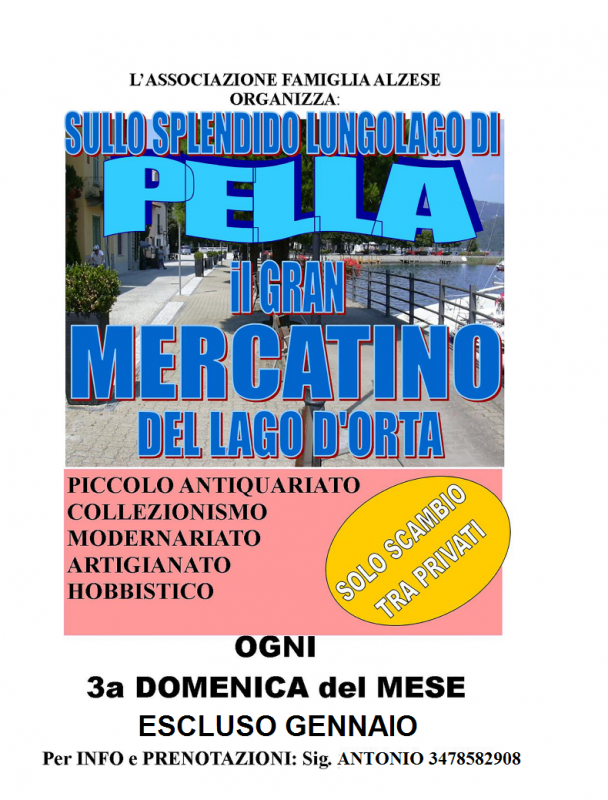 Dal 15 Maggio al 18 Dicembre, ogni 3^ domenica del mese si ripete il Gran Mercatino del Lago d'Orta