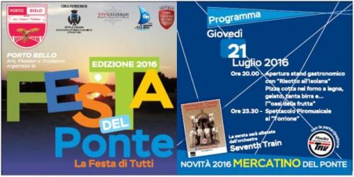 L'Associazione PortoBello in collaborazione con l'Associazione Culturale NSV Organizzazione Eventi affiliata A.I.C.S. - Comitato Provinciale di Rovigo, organizzano per la serata di Giovedì 13 Luglio 2023 a Porto di Legnago (VR), in Via Lung'Adige Scrami dalle ore 19:00 alle ore 24:00 il Mercatino della Festa del Ponte, che prevede la presenza di Espositori delle Tradizioni Popolari, dell'Artigianato Artistico e delle Opere d'Ingegno Creativo con Curiose ed introvabili Idee Regalo per la Casa ed il Tempo Libero; bancarelle di Prodotti Enogastronomici Tipici Regionali d'Italia con Degustazioni e Specialità Alimentari Dolci e Salate Stagionali; Prodotti e Rimedi Naturali per la Cura del Corpo e del Vivere Sano.Il programma della serata prevede dalle ore 19:30 l'apertura degli Stand Gastronomici a cura del Comitato Festeggiamenti S'Agostino Canove, che proporranno deliziose Pietanze legate al Territorio, tanta Birra e..... gustose sorprese.La Serata sarà allietata con la Musica dal vivo di Vanni Cigarini e i Tatanka Mani; Esibizioni ed Animazioni per Grandi e Bambini.