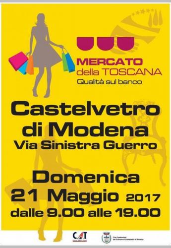 Torna domenica 21 maggio 2017 a Castelvetro di Modena il Mercato Della Toscana: enogastronomia, abbigliamento, artigianato, articoli per la casa, servizi, tempo libero e altro ancora, in via Sinistra Guerro per tutta la giornata.