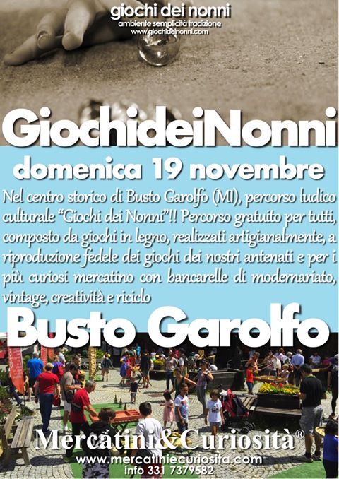 BUSTO GAROLFO (MI) - FIERA AUTUNNALE. Mercatino nel centro storico di Busto Garolfo con bancarelle di modernariato, creatività, vintage e riciclo. Durante tutta la giornata sarà presente il percorso ludico culturale "Giochi dei Nonni", gratuito a tutti, composto da giochi in legno, realizzati artigianalmente, a riproduzione fedele dei giochi dei nostri antenati.