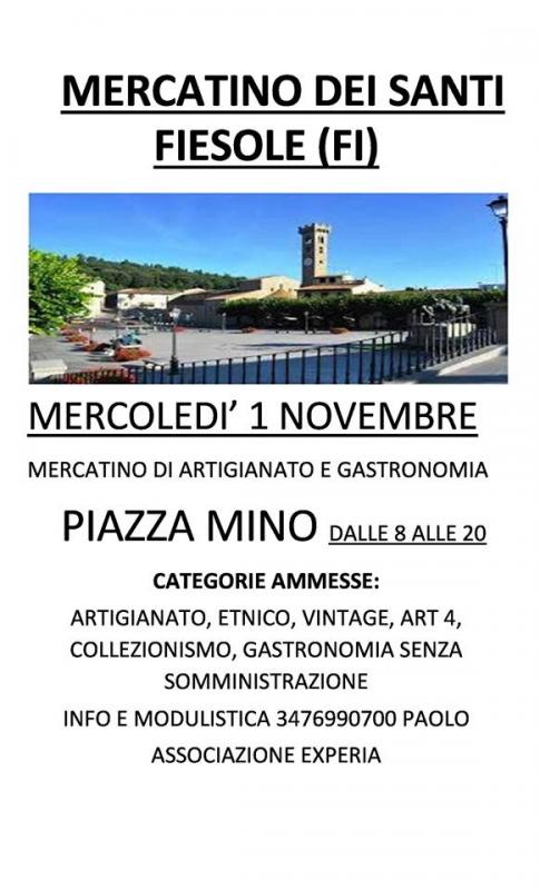 Mercoledì 01 Novembre si terrà in Piazza Mino di Fiesole dalle 08.00 alle 20.00 il Mercatino dei Santi (Mercatino di Artigianato e Gastronomia)