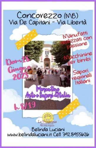 In Via De Capitani - Via Libertà a Concorezzo in provincia di Monza-Brianza si svolge nella giornata di Domenica 18 Giugno 2023, dalle ore 08.00 alle ore 19.00, il Mercatino Arte e Sapori d'Italia.