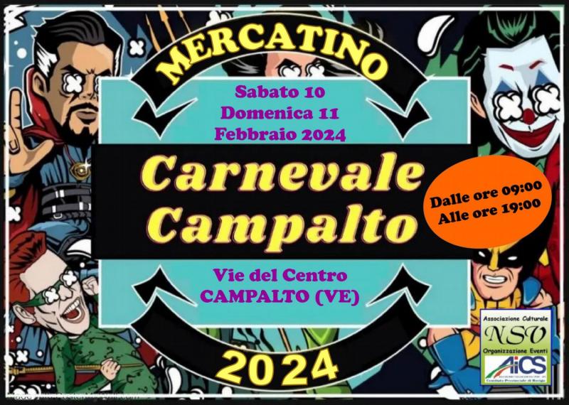 L'Associazione Culturale NSV Organizzazione Eventi APS affiliata A.I.C.S. - Comitato Provinciale di Rovigo, sarà presente in occasione del "Carnevale di Campalto" nelle giornate di Sabato 14 e Domenica 15 Febbraio 2026, a Campalto (VE), lungo le Vie Cittadine, dalle ore 09:00 alle ore 19:00 con il Mercatino delle Tradizioni Popolari, dell'Artigianato Artistico e delle Opere d'Ingegno Creativo con curiose ed originali Idee Regalo per la Casa ed il Tempo Libero con dimostrazioni pratiche delle tecniche di lavorazione sul posto, la rassegna dei Prodotti Enogastronomici Tipici Regionali ed Italiani con Degustazioni e Specialità Alimentari Dolci e Salate Stagionali prodotti artigianalmente per esaltare i Gusti e i Sapori di una tradizione antica ormai persa. Non mancheranno Stand dedicati alla Salute Naturale con Prodotti, Rimedi e Servizi che favoriscono il Benessere, la Cura del Corpo e il Vivere Sano in modo armonioso e sostenibile.Il programma delle due giornate prevede Giostre e Intrattenimenti per i più Piccoli; Dj Set fino a tardi; Stand Enogastronomico; Grande Lotteria di Carnevale.Domenica 15 Febbraio nel pomeriggio è prevista la tradizionale Sfilata dei Carri Allegorici.