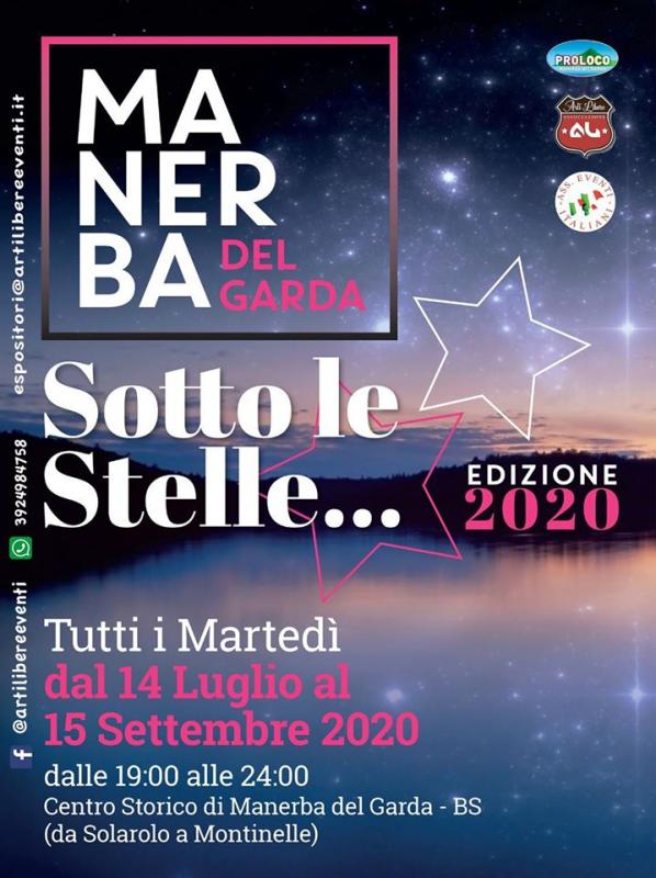 Ritorna per l’ 8° anno consecutivo l’evento più atteso del Lago di Garda, ogni Martedì dal 14 Luglio al 15 Settembre 2020 dalle 17.00 alle 01.00 nel centro storico di Manerba del Garda (BS) si svolgerà il famoso Mercatino serale SHOPPING SOTTO LE STELLE accompagnato da, luci e colori, musica e sapori, divertimento, arte, enogastronomia, artigianato, abbigliamento e tanto altro ancora, abbinato come sempre a tante sorprese.