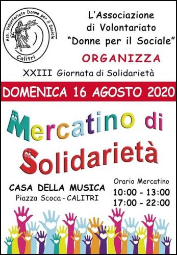 L'Associazione di Volontariato "Donne per il Sociale" organizza a Calitri in provincia di Avellino nella giornata di Domenica 16 Agosto 2020 la 23a edizione della Giornata di Solidarietà con il suo Mercatino.