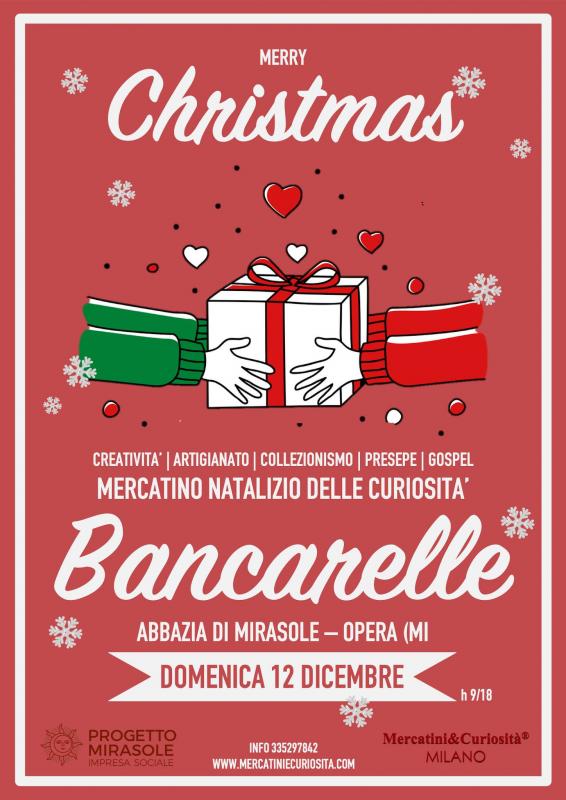 Presso l'Abbazia di Mirasole a Opera (MI), per la giornata di Domenica 12 Dicembre dalle 09.00 alle 18.00, Mercatino delle Curiosità di Natale sotto il grande portico nel cortile dell’Abbazia con bancarelle di artigianato artistico ed etnico, collezionismo, piccolo antiquariato, creatività, hand made e prodotti biologici naturali.