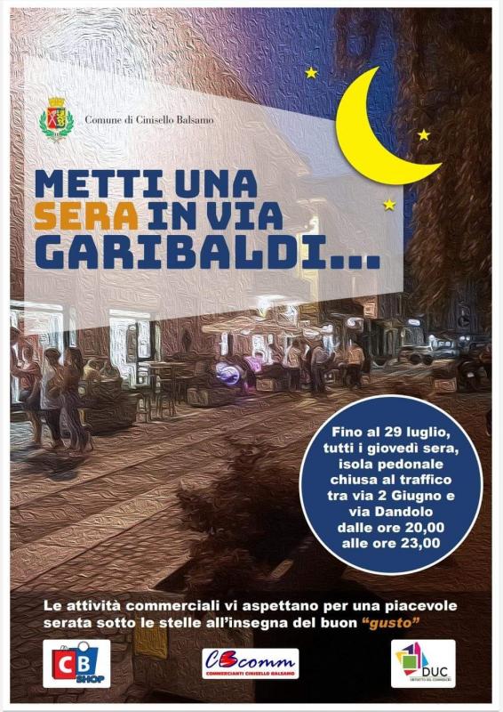 A Cinisello Balsamo in provincia di Milano si svolge ogni Giovedì sera fino al 29 Luglio 2021 la manifestazione "Metti una Sera in Via Garibaldi".