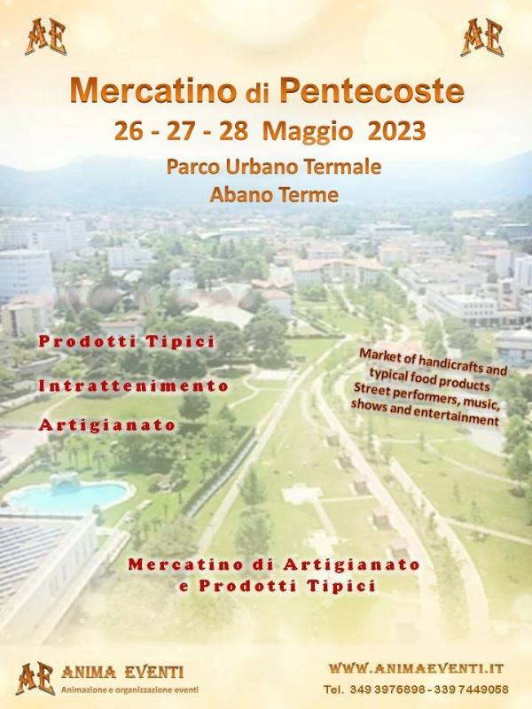 Presso il Parco Urbano Termale di Abano Terme in provincia di Padova si svolge nei giorni 26 - 27 - 28 Maggio 2023 il Mercatino di Pentecoste.