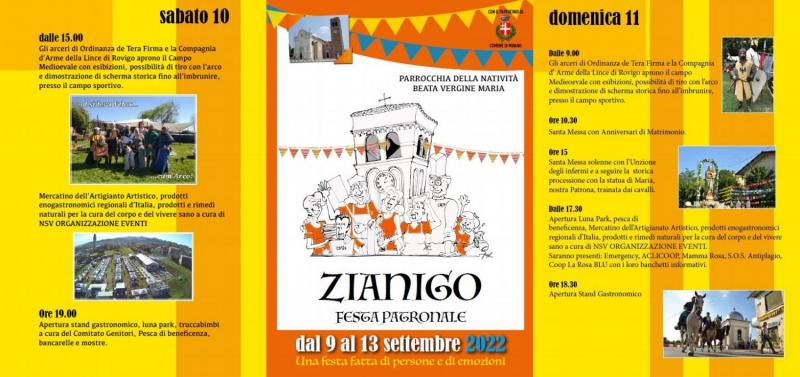 La Parrocchia della Natività della Beata Vergine Maria, in collaborazione con l'Associazione Culturale NSV Organizzazione Eventi APS affiliata A.I.C.S. - Comitato Provinciale di Rovigo, organizzano per Sabato 10 e Domenica 11 Settembre 2022, a Zianigo di Mirano (VE), all'interno del Campo Sportivo alla Torre dalle ore 15:00 alle ore 24:00 il Mercatino della Festa Patronale, che prevede la presenza di Espositori delle Tradizioni Popolari, dell'Usato/Antiquariato/Vintage, dell'Artigianato Artistico e delle Opere d'Ingegno Creativo con curiose ed originali Idee Regalo per la Casa ed il Tempo Libero, bancarelle di Prodotti Enogastronomici Tipici Regionali d'Italia e Specialità Alimentari Dolci e Salate Stagionali, Prodotti e Rimedi Naturali per la Cura del Corpo e del Vivere Sano.