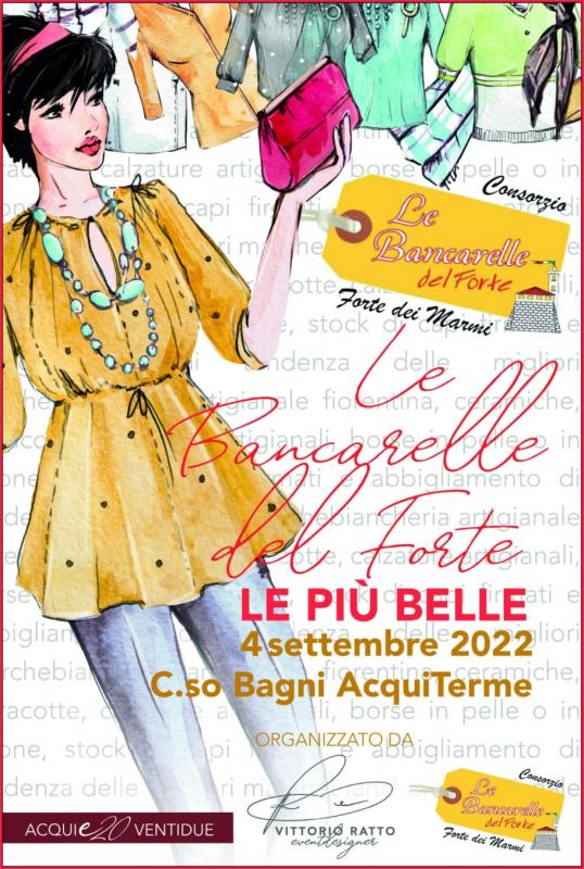 Presso C.so Bagni AcquiTerme di Forte dei Marmi in provincia di Lucca si svolge nella giornata di Domenica 04 Settembre 2022 il mercatino Le Bancarelle del Forte dei Marmi.