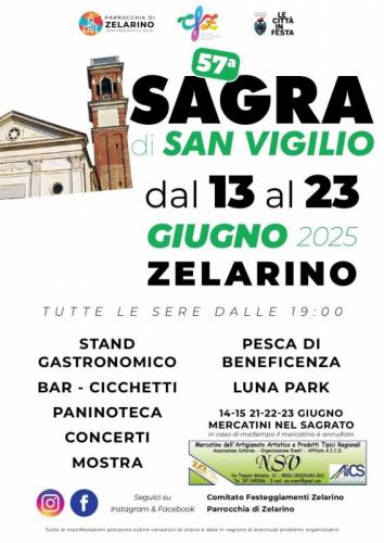 L'Associazione Culturale NSV Organizzazione Eventi APS affiliata A.I.C.S. - Comitato Provinciale di Rovigo, sarà presente in occasione della "Sagra di San Vigilio" nelle serate di Sabato 14; Domenica 15 e Sabato 21; Domenica 22 e Lunedì 23 Giugno 2025, a Zelarino (VE), nel Sagrato della Parrocchia di Maria Immacolata e San Vigilio, in Via Castellana, 70 dalle ore 18:30 alle ore 24:00 con il Mercatino delle Tradizioni Popolari, dell'Artigianato Artistico e delle Opere d'Ingegno Creativo con curiose ed originali Idee Regalo per la Casa ed il Tempo Libero con dimostrazioni pratiche delle tecniche di lavorazione sul posto, la rassegna dei Prodotti Enogastronomici Tipici Regionali ed Italiani con Degustazioni e Specialità Alimentari Dolci e Salate Stagionali prodotti artigianalmente per esaltare i Gusti e i Sapori di una tradizione antica ormai persa. Non mancheranno Stand dedicati alla Salute Naturale con Prodotti, Rimedi e Servizi che favoriscono il Benessere, la Cura del Corpo e il Vivere Sano in modo armonioso e sostenibile.Per tutte le sere dalle ore 19:00 funzionerà lo Stand Gastronomico, il Bar-Cicchetti e la Paninoteca.Concerti, Luna Park, Pesca di Beneficenza e Mostre allieteranno le serate.