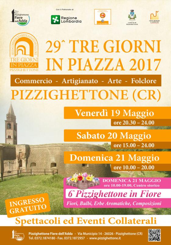 Torna dal 19 al 21 maggio 2017 a Pizzighettone Tre giorni in Piazza e per tutto il weekend sarà festa della Primavera.