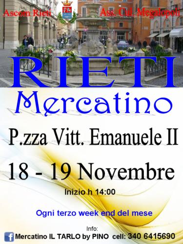 Sabato 18 e domenica 19 novembre 2017 si tiene a Rieti, in piazza Vittorio Emanuele dalle ore 14, il Mercatino il Tarlo.