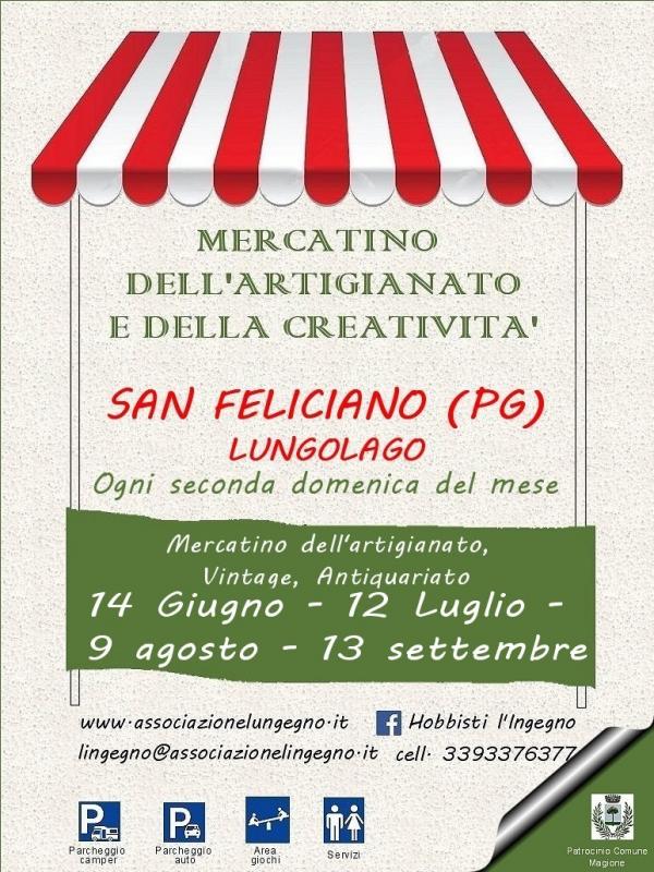 Sul Lungolago di San Feliciano di Magione in provincia di Perugia si svolge nella giornata di Domenica 24 Giugno 2020 il mercatino del'artigianato, antiquariato, vintage e tanto altro.