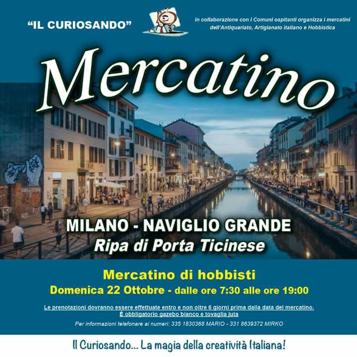 Domenica 22 Ottobre 2017 dalle 07.30 alle 19.00 si svolgerà il Mercatino a Milano - Ripa di Porta Ticinese (Naviglio Grande).