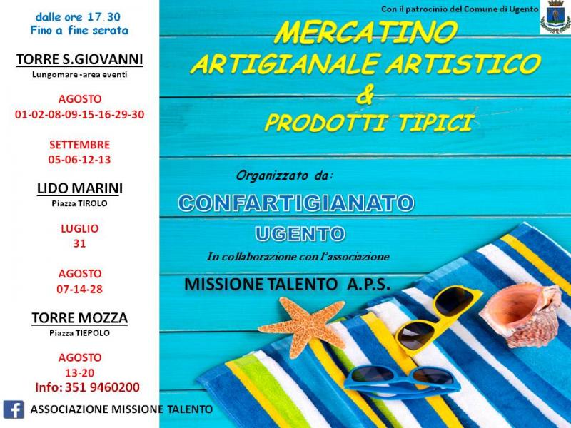 Mercatino artigianale artistico con prodotti tipici, sulle Marine di Ugento (LE) dal 31 luglio al 13 settembre dalle ore 17.30 fino a fine serata