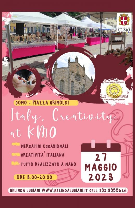 In Piazza Grimoldi a Como si svolge nella giornata di Sabato 27 Maggio 2023, dalle ore 08.00 alle ore 20.00, il Mercatino Creativo "Italy, Creativity at Km 0" organizzato dall'associazione culturale "La Presentosa" arte, hobby, artigianato.