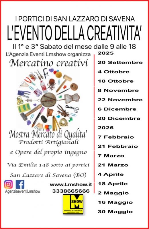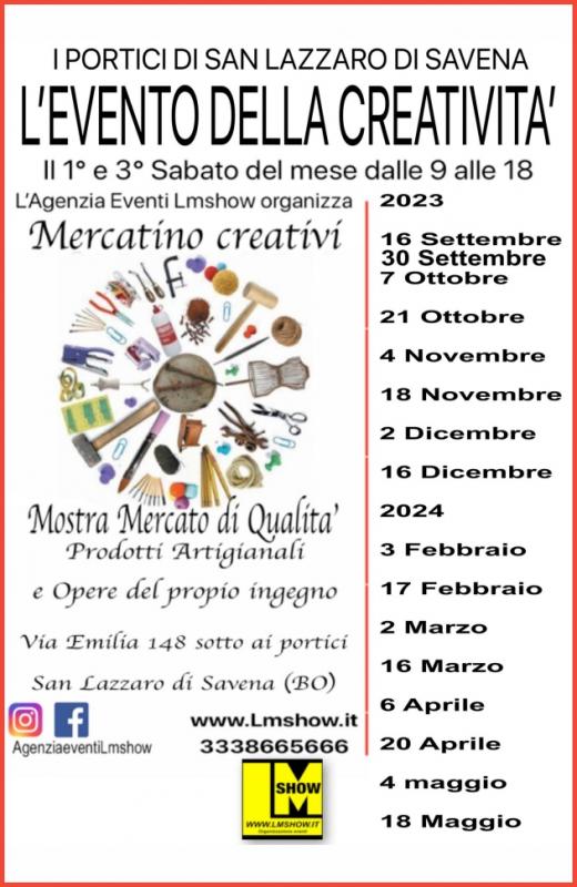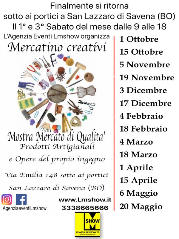Un'evento unico che porterà le bancarelle dei creativi provenienti da tutta l'Emilia Romagna e oltre. Tutto questo a San Lazzaro di Savena (BO), in Via Emilia 148 dalle 08.00 alle 18.00.
