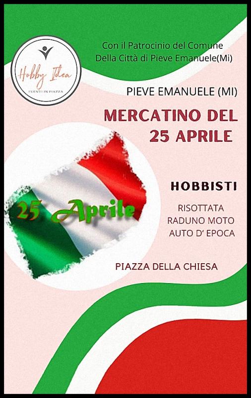 In Piazza della Chiesa a Pieve Emanuele in provincia di Milano si svolge nella giornata di Giovedì 25 Aprile 2024, dalle ore 09.00 alle ore 19.00, il Mercatino del 25 Aprile.