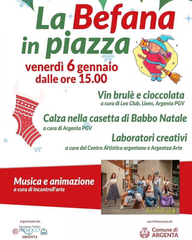 Dopo l’assenza dovuta alle limitazioni covid torna ad Argenta la Befana in piazza, e con l’aiuto di Babbo Natale, la Pasquella distribuirà doni e dolciumi a tutti i bambini.