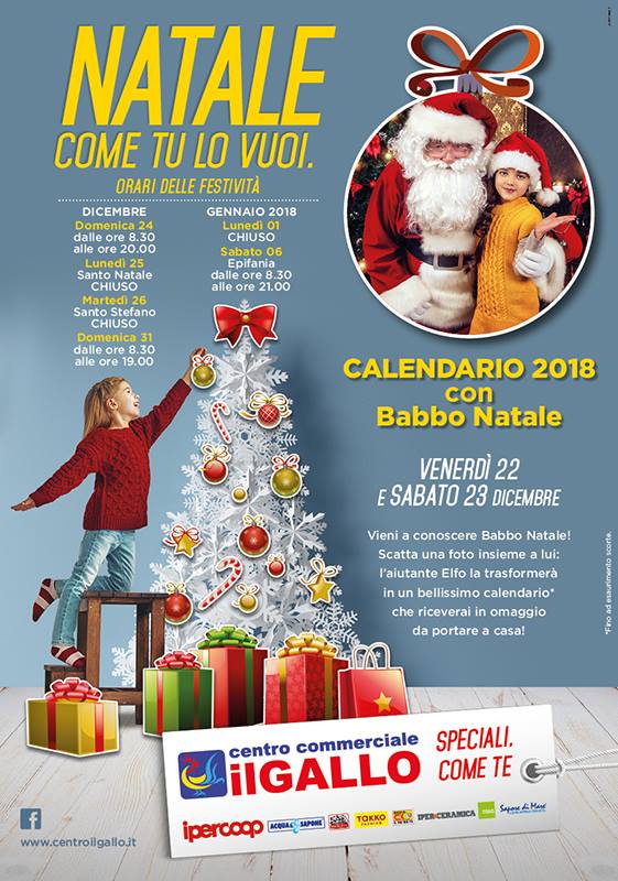 Sabato 6 gennaio 2017 al Centro Commerciale il Gallo di Galliate (NO) arriva l'ultimo appuntamento con gli eventi di Natale e si festeggia l'Epifania dalle ore 8,30 fino alle ore 21 con l'arrivo della Befana.