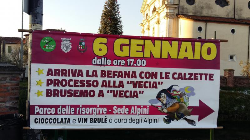 6 GENNAIO A VILLA DEL CONTE , presso la sede Alpini (dietro Chiesa)"ARRIVA LA BEFANA" e "BRUSEMO A VECIA":