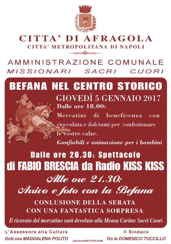 Giovedì 5 gennaio 2017 arriva la Befana nel centro storico di Afragola.