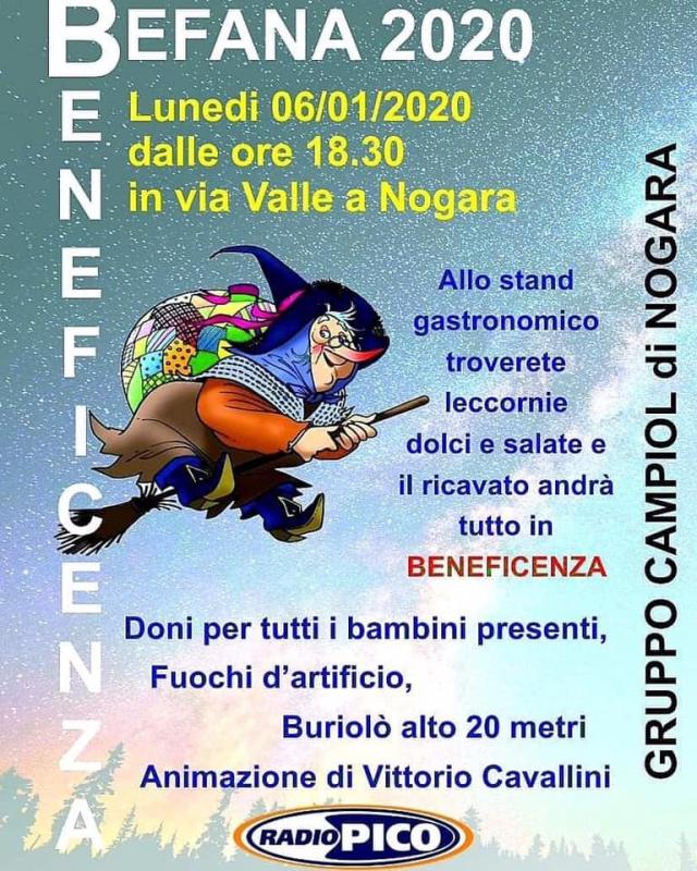 A Nogara in provincia di Verona si svolge nella giornata di Lunedì 06 Gennaio 2020 dalle ore 18.30 la Festa della Befana.