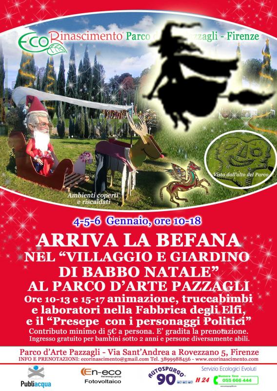 ARRIVA LA BEFANA NEL “VILLAGGIO E GIARDINO DI BABBO NATALE” AL PARCO D’ARTE PAZZAGLI – FIRENZE