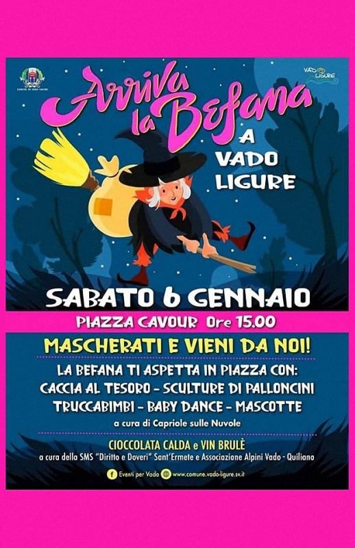 E allora Befane e Befani, grandi e piccini, preparatevi perché Sabato 06 Gennaio vi aspettiamo tutti mascherati e non, in Piazza Cavour a Vado Ligure per un altro indimenticabile pomeriggio di divertimento conviviale!