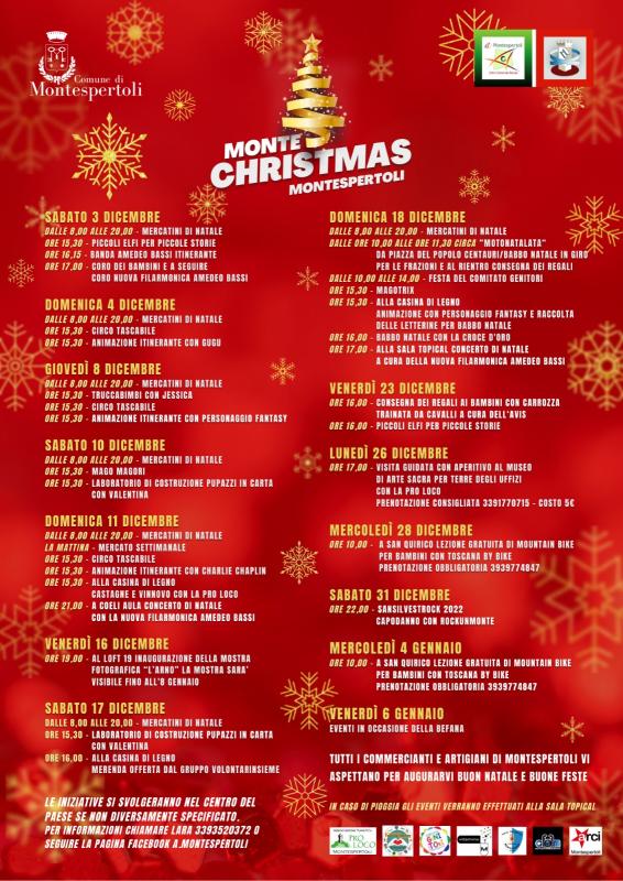 "Monte Christmas" è il nome dell'iniziativa organizzata dall'Associazione Commercianti che prevede un ricco programma di eventi per le festività natalizie a partire da sabato 3 dicembre.