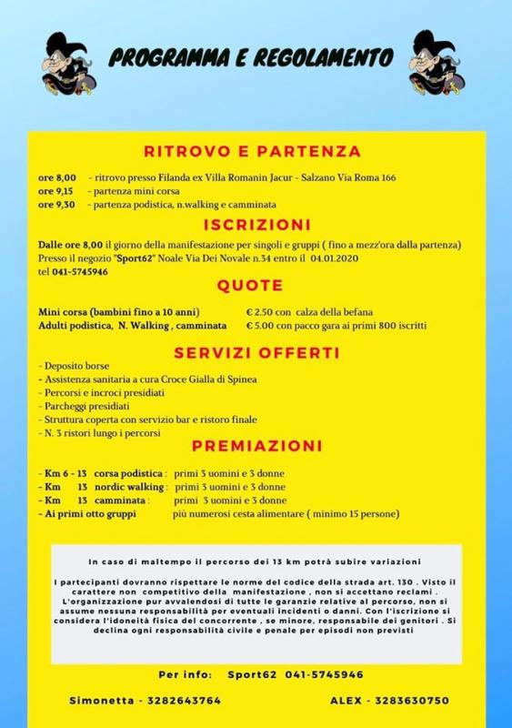 A Salzano in provincia di Venezia si svolge nella giornata di Lunedì 06 Gennaio 2020 la 10a edizione di Corri con la Befana, la manifestazione podistica non competitiva.