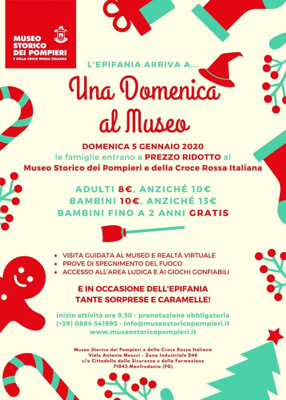 Domenica 5 gennaio 2020, l’Epifania arriva con un giorno d’anticipo al Museo Storico dei Pompieri e della Croce Rossa Italiana di Manfredonia (FG), dove tutte le famiglie potranno accedere a prezzo ridotto, per una giornata all'insegna dell'apprendimento e del divertimento!