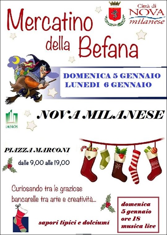 A Nova Milanese in provincia di Monza e Brianza si svolge nei giorni 05 e 06 Gennaio 2020 il Mercatino della Befana.